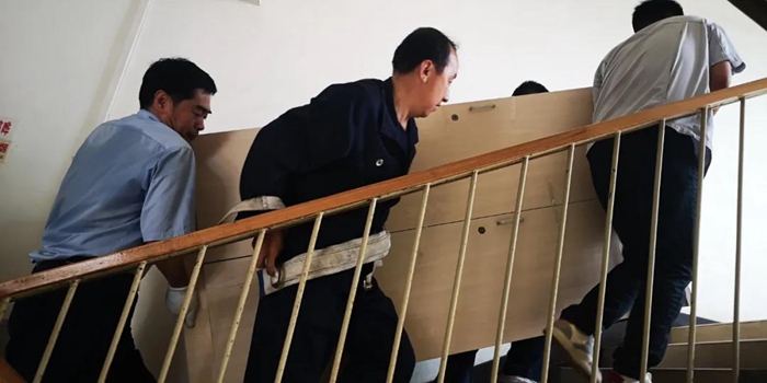 當日天氣十分潮濕悶熱,不動都是一身汗,但是黨員同志們在周玉斌的帶領下,一件一件搬動近兩米的衣柜,一步一步搬運至宿舍樓四樓。經過大家的共同努力,終于將幾組衣柜搬運到了新員工宿舍,并細致地更換了柜鎖。
