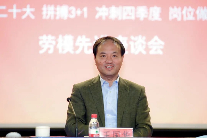 10月13日下午,北京化工集團總部三樓會議室洋溢著熱烈喜慶的氣氛,“喜迎二十大 拼搏‘3+1’ 沖刺四季度 崗位做貢獻”為主題的勞模先進座談會正在這里舉行。北京化工集團黨委書記、董事長王國華出席會議并講話,黨委副書記、工會主席吳瑞峰主持會議,集團相關部室負責人,勞動模范和先進工作者代表參加會議。