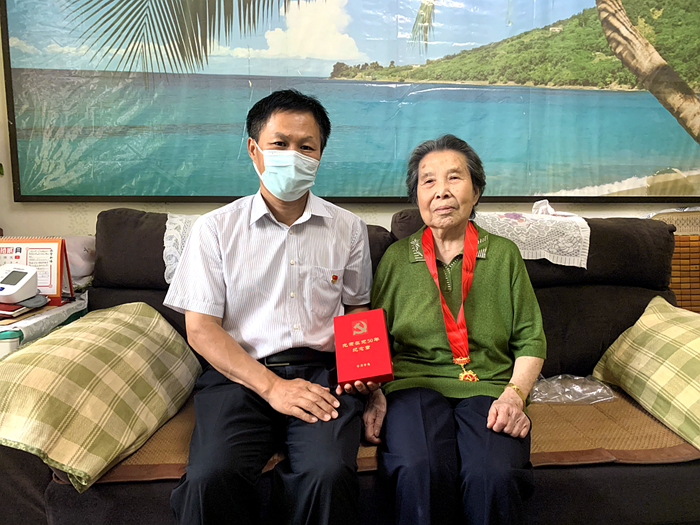 7月1日下午,在中國共產黨成立101周年之際,受北京化工集團黨委委托,黨委副書記吳瑞峰帶隊來到離休干部孫華云家中,向她頒發“光榮在黨50年”紀念章。孫華云同志今年已91歲高齡,1946年9月1日參加工作,1972年7月1日入黨,是集團原合纖廠工會干部。