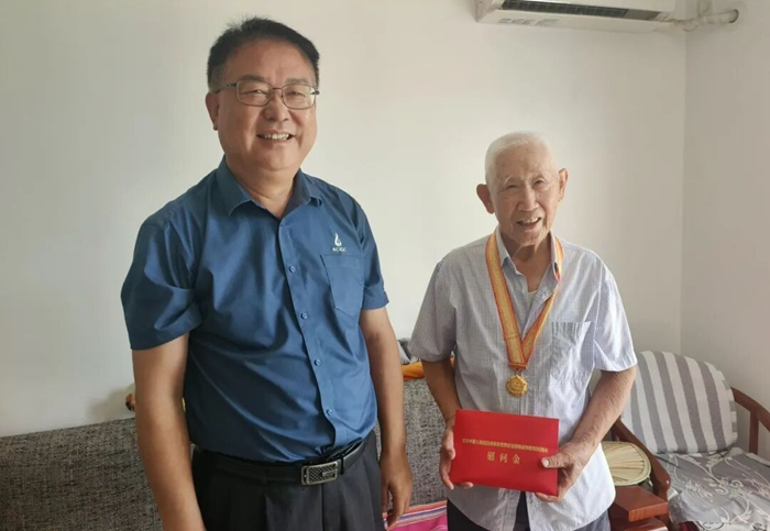 北京化工集團(tuán)黨委高度重視紀(jì)念章頒發(fā)工作,黨委書記、董事長陳宇等集團(tuán)領(lǐng)導(dǎo)帶隊(duì)向抗戰(zhàn)老戰(zhàn)士、老同志吳新華、焦鐵、崔震頒發(fā)紀(jì)念章,向老戰(zhàn)士、老同志們致以崇高敬意、親切慰問。