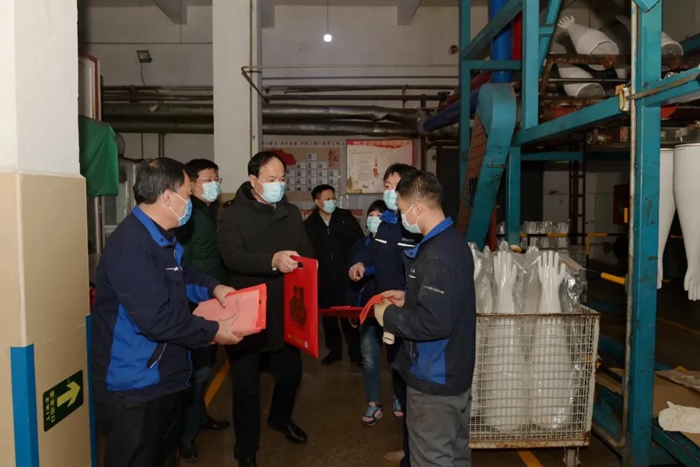 張時明一行考察了華騰橡塑公司生產(chǎn)現(xiàn)場,華騰美居酒店的“暖心驛站”,親切慰問堅守在一線崗位的職工和困難職工代表,帶去慰問品的同時也送上了親切的問候和真情關(guān)懷。