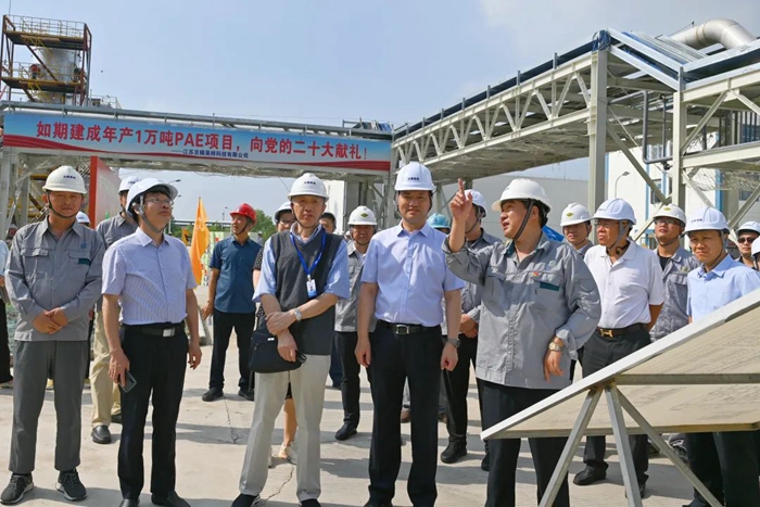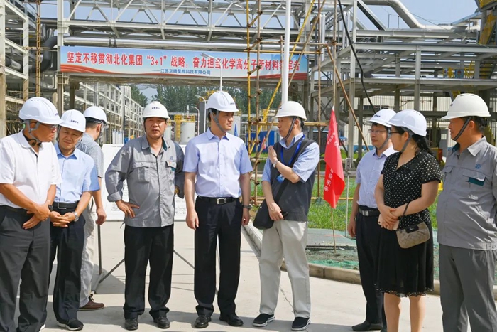 月19日,董事會一行來到江蘇京騰昊樺公司,現(xiàn)場考察年產(chǎn)1萬噸聚芳醚樹脂(PAE)項目建設(shè)情況。PAE項目是國家強基工程項目,是北京化工集團推進“3+1”業(yè)務的重要載體,是集團年度40項重點任務之一。