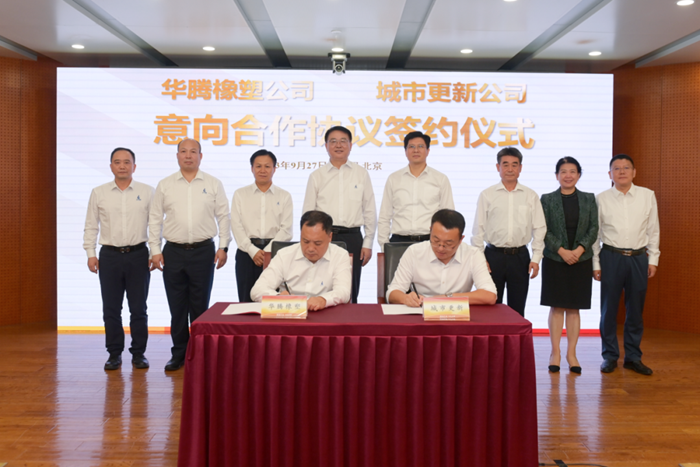 9月27日,北京化工集團與所屬華騰橡塑公司,亦莊控股與所屬城市更新公司4方共同簽署《華騰橡塑城市更新項目意向合作協議》。北京化工集團黨委書記、董事長陳宇,亦莊控股黨委書記、董事長王軍共同見證簽約并講話;亦莊控股董事、總經理楊文良主持簽約儀式。北京化工集團黨委副書記吳瑞峰,黨委常委、副總經理韓寶海,總經理助理陳紹洲;亦莊控股董事、黨委副書記韓洪英,董事、副總經理盧自鋒出席簽約儀式。