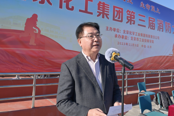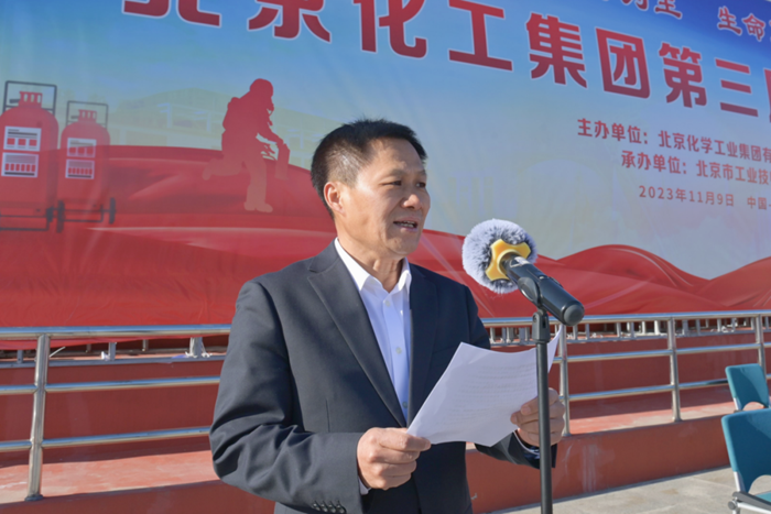 在全國第32個“119”消防宣傳日當天,北京化工集團第三屆消防大比武在技師學院舉辦,黨委書記、董事長陳宇致開幕詞,黨委副書記吳瑞峰主持開幕式并致閉幕詞,黨委常委、副總經理韓寶海主持閉幕式,來自全系統的350多名職工參加大比武。