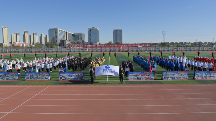 彩旗飄揚、步履鏗鏘。隨著檢閱式開始,國旗方陣、紅旗護衛方陣、應急隊伍方陣、裁判員工作員方陣以及集團二級單位14支參賽代表隊方陣整齊列隊。伴著激昂的鼓聲和雄壯的樂曲聲,各代表隊精神抖擻、器宇軒昂,邁著雄健的步伐以昂揚的姿態,挺胸抬頭、闊步向前,一聲聲震天的口號在主席臺前響起。北京化工人朝氣蓬勃、奮勇爭先的精神風貌震撼全場。