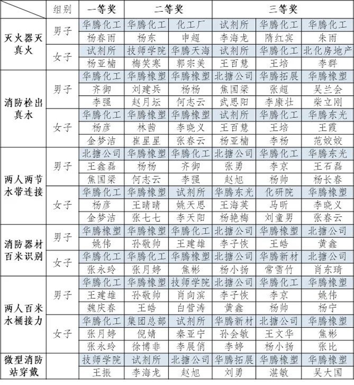 本次大比武各項目設一等獎一名,二等獎兩名,三等獎三名。經過激烈的角逐,有17名員工獲得一等獎;34名員工獲得二等獎;51名員工獲得三等獎;各單位獲得最佳組織獎、最佳風貌獎、最佳拼搏獎、專業示范獎榮譽。