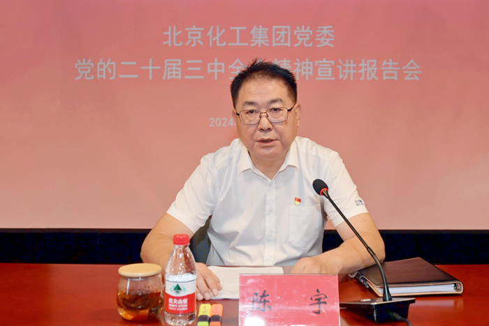 7月31日,北京化工集團黨委召開黨的二十屆三中全會精神宣講報告會,黨委書記、董事長陳宇作宣講報告;7月29日,集團黨委理論學習中心組專題學習黨的二十屆三中全會精神;7月24日,集團黨委常委會集中學習黨的二十屆三中全會精神。快速度、多形式,深研學、重實效,北京化工集團黨委深入學習宣傳黨的二十屆三中全會精神,掀起學習宣傳的熱潮。