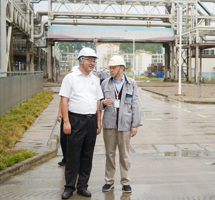 9月25日,北京化工集團(tuán)黨委書記、董事長陳宇,黨委副書記吳瑞峰專程來到江蘇泰興,實(shí)地調(diào)研京騰昊樺安全生產(chǎn)情況。陳宇一行走進(jìn)生產(chǎn)裝置現(xiàn)場,仔細(xì)了解現(xiàn)場生產(chǎn)和安全運(yùn)行情況。