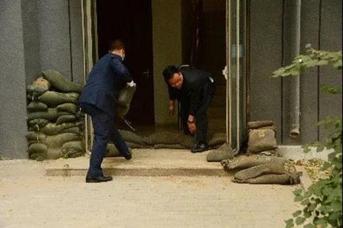 此次防汛應(yīng)急演練內(nèi)容是假設(shè)雨季汛期來臨時(shí)連降暴雨,雨水倒灌進(jìn)嘉賓樓北側(cè)安全出口,發(fā)生了險(xiǎn)情的應(yīng)急處置。演練中,巡查人員發(fā)現(xiàn)險(xiǎn)情后,迅速報(bào)告防汛指揮辦公室,防汛組長下令立即啟動(dòng)防汛應(yīng)急預(yù)案并趕往現(xiàn)場進(jìn)行指揮,各部門防汛隊(duì)員接到指令后迅速趕到現(xiàn)場,防汛隊(duì)員使用防汛沙袋堆積在發(fā)生倒灌的安全出口處,防止水流繼續(xù)涌入,并使用掃帚、鐵鍬等防汛工具將場內(nèi)積水清理進(jìn)排污井內(nèi),工程部開啟相關(guān)抽水泵清除場內(nèi)積水。整個(gè)演練過程用時(shí)20分鐘,參演人數(shù)10余人,物資準(zhǔn)備充分,人員配合默契,工作有條不紊,應(yīng)急處置得當(dāng)。