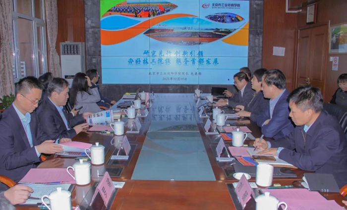 10月19日上午,中化環(huán)境公司黨委書記、董事長、總經(jīng)理崔焱一行9人慕名來到北京市工業(yè)技師學(xué)院,參觀了解學(xué)院豐碩辦學(xué)成果,與北京化工集團(tuán)、學(xué)院共商培訓(xùn)合作事項(xiàng),北京化工集團(tuán)黨委書記、董事長王國華,黨委副書記吳瑞峰及相關(guān)部室負(fù)責(zé)人,技師學(xué)院相關(guān)領(lǐng)導(dǎo)、教師一同參觀、洽談。