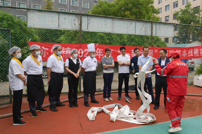 此次活動得到北京化工集團總部及丹陛華公司的高度重視,提前制定并反復(fù)研討了演練組織方案,集團辦公室及安全環(huán)保部直接參與指導(dǎo)。本次演練集團總部、項目管理、保潔、保安、餐飲服務(wù)及園區(qū)內(nèi)其他企業(yè)全員參與,演練內(nèi)容包括消防水帶噴水演練考核及干粉滅火器滅火演練考核,兩項考核全程錄像并上傳至北京市消防大隊“一警六員”消防知識培訓(xùn)及演練后臺。