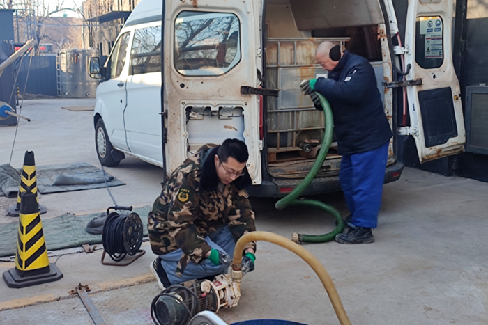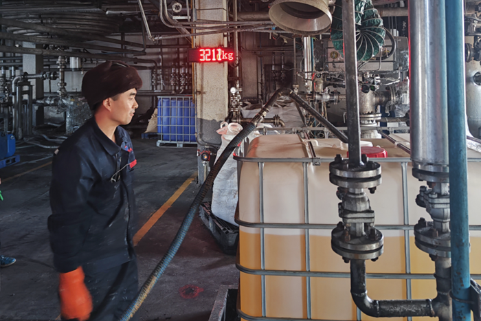 就在大年初六凌晨4時許,當(dāng)班的黨員同志們按時將環(huán)保試劑配送到北京固廢物流有限公司消納站,按照工作安排,當(dāng)天要把1噸的除磷劑輸送到反應(yīng)罐中,他們熟練地進行插管、接泵、架線等各項工作。同時,他們還要把500公斤的檸檬酸固體送到消納站倉庫,以保證節(jié)日期間正常之需。