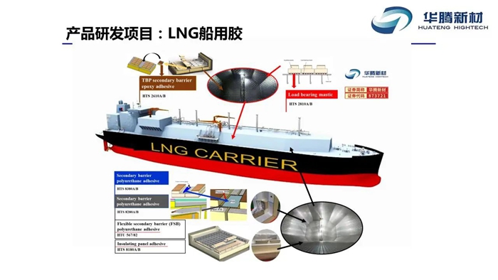 “十四五”期間,華騰新材在深耕傳統(tǒng)膠粘劑市場基礎(chǔ)上,直面LNG船用膠這一“卡脖子”技術(shù)難題,以高端新材料“破題”為抓手,以產(chǎn)業(yè)迭代為目標(biāo),將LNG船用膠作為解決自主替代難題,大膽突破,開拓新市場的重點科研項目。2023年,經(jīng)過科研人員多年全力攻關(guān),華騰新材LNG船用膠產(chǎn)品取得重要突破,其中絕緣板用聚氨酯膠粘劑成功通過法國GTT公司認(rèn)證,并順利投入商業(yè)化生產(chǎn)。